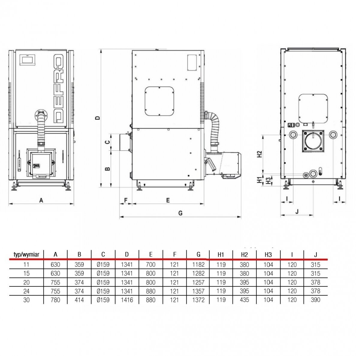 Granulinio katilo DEFRO CALORI Bio Slim granulių talpykla sumontuota tiesiai virš katilo. Šis sprendimas leidžia įrenginį pastatyti siaurose katilinėse.