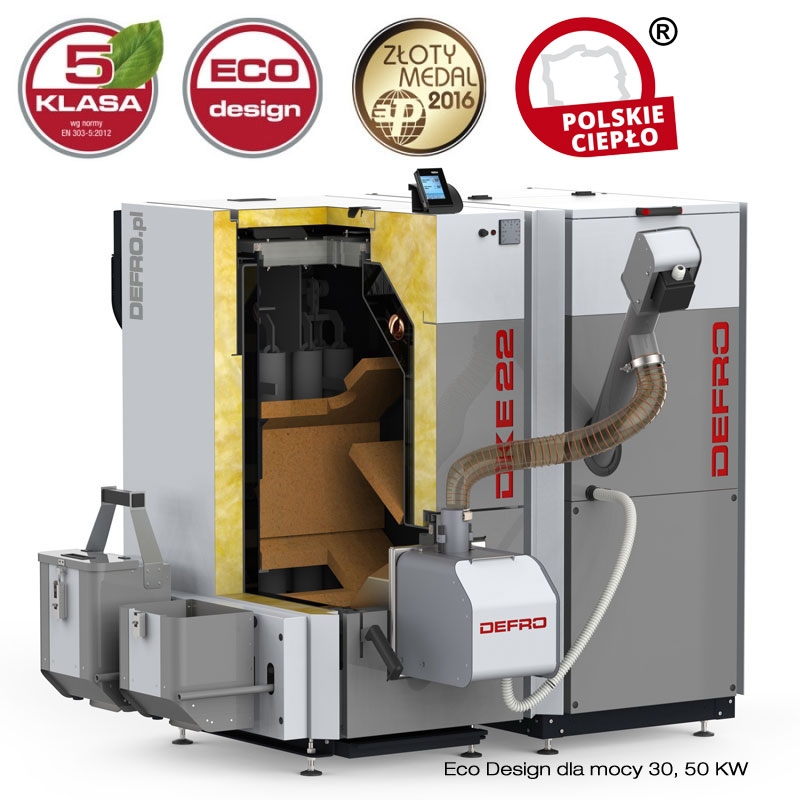 Tai šiuolaikiško dizaino, efektyvus granulinis katilas 2016 metais Lenkijoje apdovanotas aukso medaliu kaip geriausias metų gaminys. Šie Defro katilai kūrenami medžio granulėmis 6-8mm. Defro Kompakt EkoPell katilai skirti apšildyti individualius namus, visuomenines, ūkines bei gamybines patalpas. Šie modernus katilai išsiskiria efektyvumu - jų naudingumo koeficientas siekia net 91%! Taop pat jie atitinka visus Europos Sąjungos nustatytus EN303-5 standarto reikalavimus.paprastu Katilo valdiklyje įdiegtos naujausios technologijos, kurių dėka valdomas ne tik katilo degimo procesas, bet ir visos šildymo sistemos darbas. Katilo valdiklis valdo 4 cirkuliacinių siurblų darbo režimą ir dviejų pamaišymo vožtuvų pavaras. Šio tipo valdiklis, prijungus prie interneto ar GSM, turi galimybę būti valdomas nuotoliniu būdu. Gaudamas duomenis iš lauko ir vidaus daviklių, valdiklis duoda komandą degikliui pradėti degimo procesą, aktyvinti degimą, slopinti ar visai gęsinti medžio granules. Taip išlaikydamas užduotus patalpų temperatūros parametrus. Defro Kompakt EkoPell šilumokaitis pagamintas iš 6mm specialaus P265GH katilinio plieno, kuriame sumontuota pusiau automatinė išsivalymo sistema. Šio modelio granuliniai katilai turi sumontuotą šilumokaičio aušintuvą, degimo proceso metu saugantį katilą nuo perkaitimo. Defro Kompakt EkoPell degimo kamera turi keraminius katalizatorius, stabilizuojančius granulių degimą ir didindamos katilo efektyvumą ir ekologiškumą.
