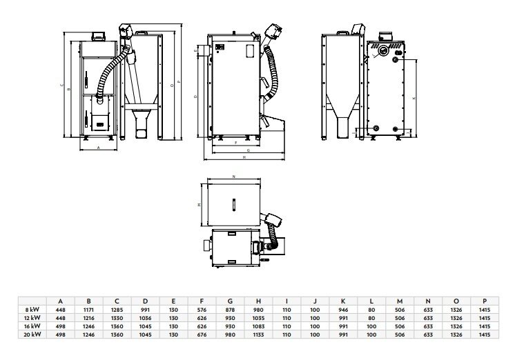 Galimos galios: 8 kW, 12 kW, 16 kW ir 20 kW